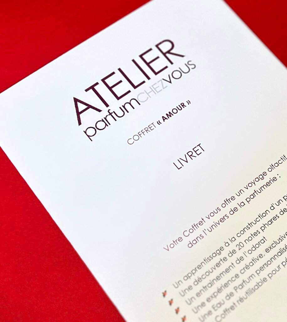 The perfume creation kit includes a learning booklet and all the accessories you need to create your perfume easily (see below).